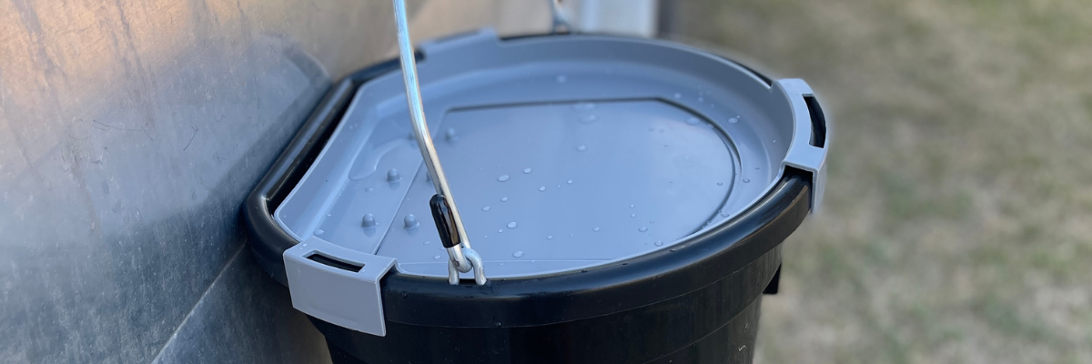 Designed with the traveling horse in mind, we've created a snap-on, spring-loaded lid giving your horse a no-spill, no splash trailer ride!